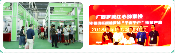 2017年,深河两地的对口帮扶工作实现从“输血式”向“造血式”转变。河源市组织了下辖的紫金、龙川、东源、和平、连平等各县及河源市灯塔盆地国家现代农业示范区的69家代表农业企业参展。同时,河源市人民政府、深圳对口帮扶河源指挥部联合主办了2017 年河源(深圳)现代农业招商推介会,完成源城区埔前镇田园综合体、深圳贤达紫金农产品物流园等10个合作项目集体签约。广东河源市参展成效显著,通过组委会展前服务、展中对接成交农业项目 35 亿元,与深圳采购对接签约 19 亿元。深圳绿博会在经历3年的培育期后,2018年跨入发展的新阶段,整体的参展企业数量实现新的突破,帮扶地区和东西部协作地区的参展组团占据1/3,这也展现了深圳绿博会全心全意服务于扶贫和乡村振兴的决心。 “帮扶罗城,就等于帮扶一个民族。”2018年,在深圳绿博会及相关政府的共同组织下,现场举办了罗城红心猕猴桃暨深圳市福田区援建罗城“千亩千户”扶贫产业2018年深圳专场推介会,并且促成多家企业与罗城红心猕猴桃企业签订采购协议,现场完成销售订单4800件,重量达12吨。通过推介会及现场展示展销等形式,红心猕猴桃吸引了专业采购商和消费者的目光,值得关注的是,当时罗城县其中一家参展企业运来的整货车猕猴桃,两天内就被抢购一空,足见展会的人流量及深圳市民的消费力。