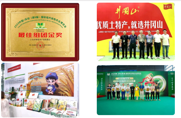吉安市绿色农产品促进会荣获最佳组团金奖,江西顺福堂中药饮片有限公司朱纪洲荣获中国现代农业领军人物。井冈山市佬朋友食品有限公司的井冈山牌红米饭南瓜果汁,江西佳达实业有限公司的茶母山牌有机山茶油,井冈山市坪洋珍稀水产养殖有限公司的井鲵牌井冈山大鲵,江西好吃客农业综合开发有限公司的好吃庐陵牌土鸡,江西井福康农业开发有限公司的竹之绿牌梅菜扣肉荣获优质农产品金奖。井冈山市井之绿特产有限公司的红米粉丝荣获农业高新技术成果创新金奖。吉安市绿色农产品促进会“井冈山”牌大米、“井冈山”牌井冈蜜柚,吉安市吉州区晨沐种植专业合作社“汕洋荪”井冈红托竹荪被评为“优质农产品金奖。