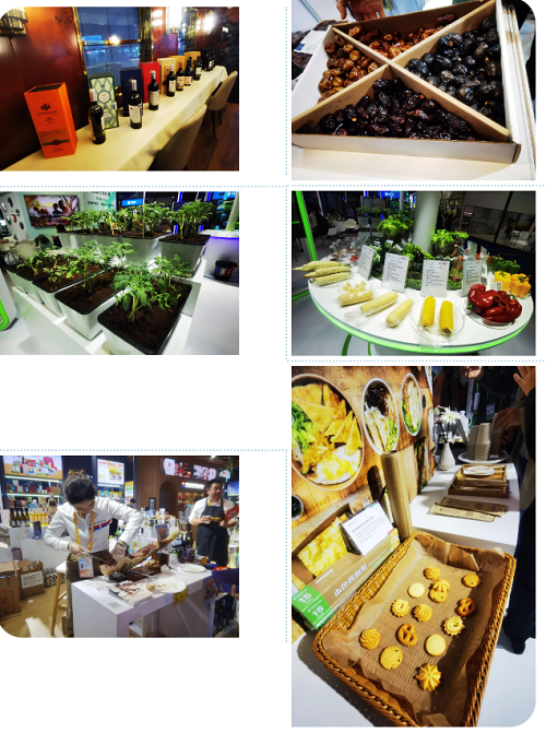 进博会的农业与食品展区:来自世界各地的美食美味,绿色健康,吸引了大量的观众排队,体验美食美酒饮品…有著名美国肉类,休闲食品,有巴西烤肉,德国火腿,西班牙火腿,阿根廷牛肉,澳洲牛肉和奶制品,新西兰奶制品,中东沙特的密枣,有俄罗斯面包,中亚地区的酸黄瓜,酸辣椒…还有香港、澳门馆的美食美酒,南非的美酒和保健茶,泰国的传统美食…跨国公司世界著名品牌的大型展馆:美国costco ,德国麦德龙,徳国拜耳,意大利金沙巧克力品牌等…