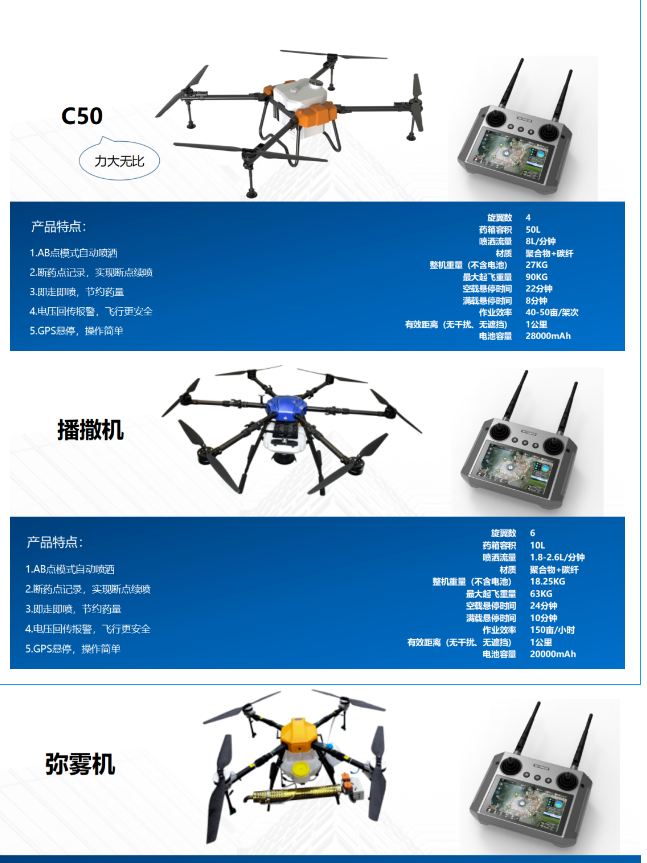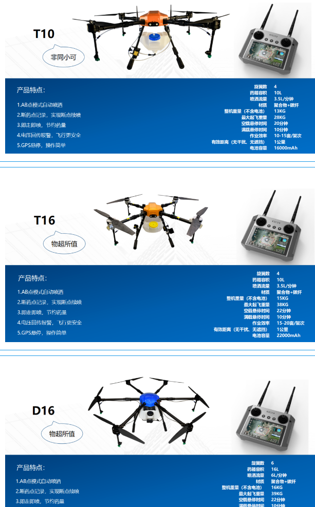 鼎峰无限作为国内首批取得AOPA(中国航空器拥有者及驾驶员协会)认可的“民用无人机驾驶航空器系统驾驶员训练机构”培训资格的企业之一 ,目前主推的四旋翼及六旋翼无人机不仅拥有悬停,环绕,一键返航,GPS,跟踪巡查等基础功能外,其极强的抗干扰能力以及强劲的长航能力,在同行业竞品中均得以脱颖而出,深受广大农业无人机飞手的推崇。