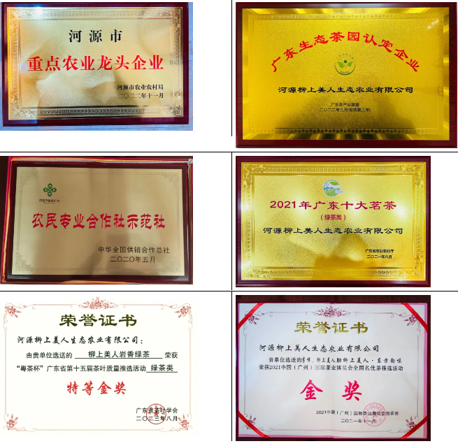 基地种植品种有龙井43号、台湾金萱、客家群体种绿茶、梅占,铁观音、苦丁茶、凤凰单丛等,茶叶年产量25吨,年产值4300万元,现代化茶叶加工厂房1200平方米,省级茶叶产业园项目自动化生产线日处理量茶青1.75吨,干茶0.7吨。注册商标有“半嶂”、“柳上美人”等。出品有炒青绿茶及手工红茶系列。半嶂仙湖茶选用客家传统手工工艺,铁锅炒制出独特的炒米香和番薯香,具备入口“甘”香,高海拔成就的“滑”和云雾小气候孕育的“绵长”,过喉后的回甜生津,口齿留香等特点。“柳上美人”红茶,选用一芽两叶的金萱品种手工发酵而成,被小绿叶蝉吸咬过的嫩芽,产生独特浓郁的蜜香味和熟果香味,干茶紧实显金毫,汤色红亮剔透,滋味甜滑香醇,具有养颜、养胃及降血糖等功效。企业荣获了国家农民合作社示范社(供销)、广东省示范社(农业农村)、广东省示范家庭农场、河源市巾帼创业基地、河源市女职工创新工作室、河源市劳模工作室、河源市重点龙头企业等荣誉。“柳上美人”红茶荣获了有机食品、2023第十五届粤茶杯特别金奖、2023全国首批生态低碳茶认证、广东生态茶园、2021广东十大茗茶、2021粤茶杯金奖、第四届亚太茶茗杯银奖、2019年世界红茶产品质量推选银奖、2019中国.深圳(第5届)深圳绿博会优质农产品金奖、广东省第十三届粤茶杯银奖、粤字号农产品,广东省名牌产品,2017年省名特优农产品、全国首批生态低碳茶认证等荣誉称号,申请并荣获了茶叶浪青机、茶叶渥堆机等国家专利。东源县茶产业知名品牌同台亮相,扩大了外界对东源的关注度,让更多人了解到了东源好茶,对东源茶产业起到了很好的宣传效应,将有利于进一步推介东源茶产业,提升东源好茶品牌效应,增加合作商机和培育潜在客户,促进东源茶产业融入粤港澳大湾区,进一步拓展国际、国内市场。河源柳上美人生态农业有限公司将坚持做好生态低碳有机茶,搭上湾区发展快车。
