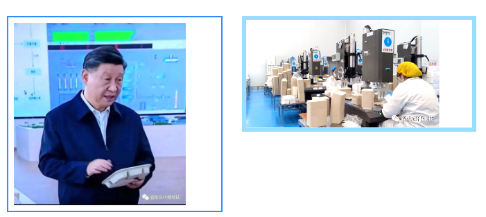 习总书记手中拿的可降解环保餐具是福期派垚能环保科技公司生产的白色四格餐盘,该公司系列产品在第九届深圳绿博会上参展,深受深圳餐饮业和包装行业的青睐。公司产品主要利用蔗渣浆等天然植物纤维材料,通过模具塑造成型,是塑料制品的良好替代,现场展示的产品还有龙虾盘、医疗盘、福扣打包盒等等,广泛应用于餐饮、快消、医疗、工业等领域。