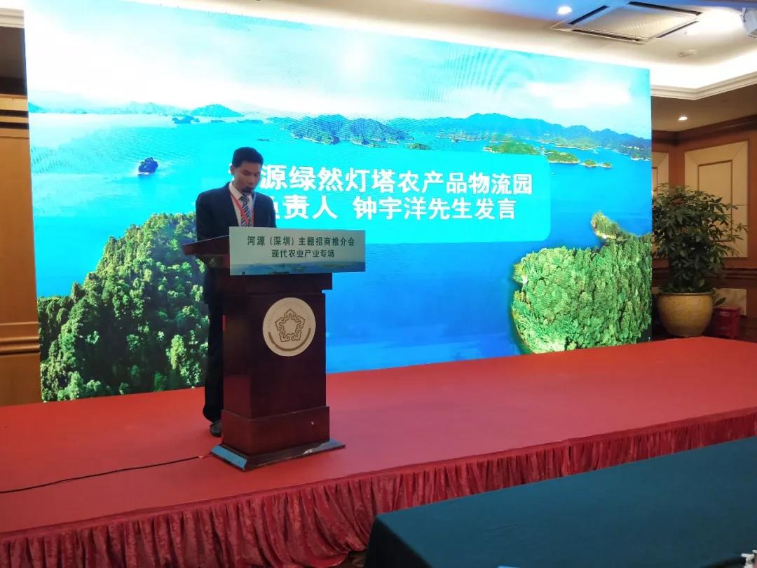今天我代表广东绿然灯塔农产品物流有限公司参加由深圳对口帮扶河源指挥部、河源市农业局、河源市商务局、河源市旅游局、河源市灯塔盆地管委会联合举办的河源(深圳)主题招商推介会,在此,我仅代表我司对大会的成功举办表示热烈的祝贺,对应邀参会的各位领导和嘉宾表示热烈的欢迎!