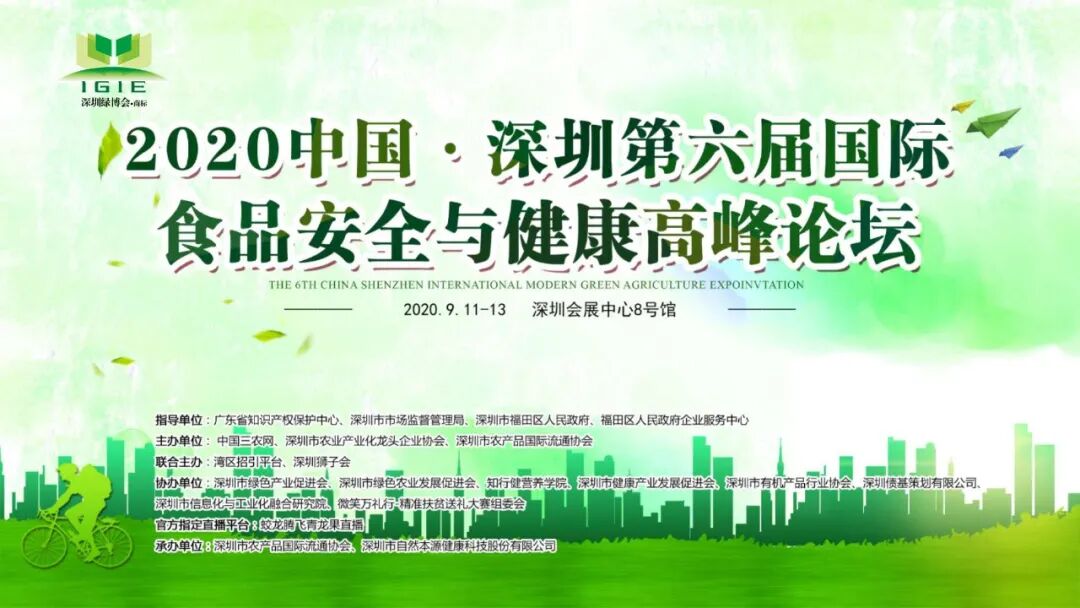 中国·深圳(第6届)国际现代绿色农业博览会,2020中国深圳第六届食品安全与健康高峰论坛暨生态与智慧农业技术应用研讨会,将于2020年9月11-13日在深圳会展中心7、8号馆举办。