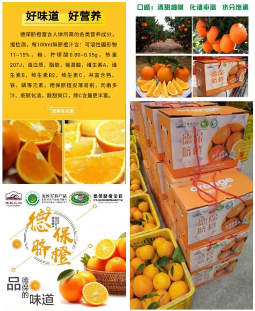 “因地处高海拔低纬度区域,德保盛产全国早熟高山优质脐橙品种,脐橙果色靓丽、肉质香甜、口感鲜美!德保是生产早熟脐橙的绝佳“宝地”。