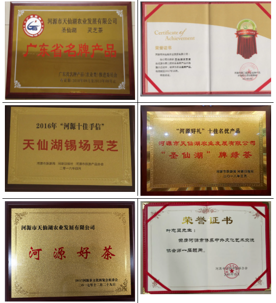 在质量、环保、流通上均获得SC食品生产许可证、排污许可证、食品流通许可证,2020年,该公司成立了“河源市天仙湖茶产业星创天地”,同年,成为广东省东源县省级现代茶产业实施主体之一,为东源县茶叶产业发展起到了积极促进的作用。2009年,公司被评为“河源十强农业龙头企业”,2008年被省政府评为“广东省民营科技企业”,获“承诺诚信单位”荣誉,2007年被河源市人民政府评为“河源市重点农业龙头企业”。