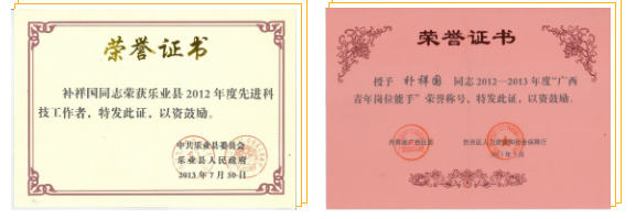 2013年5月获广西人力资源和社会保险厅--广西青年岗位能手奖励