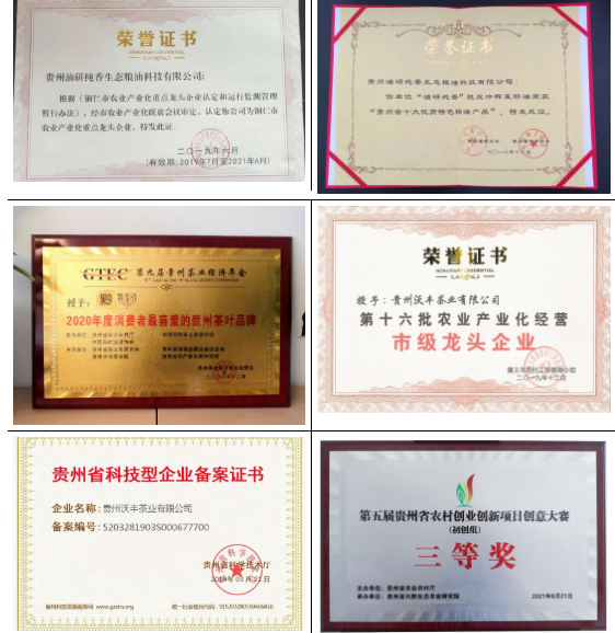 砥砺前行的道路上,公司收获了满满的荣誉:2016年获得思南县工业生产先进企业和新增规模型工业企业称号;2017年获得“贵州十大特色优质粮油产品”、省科技型企业、获得新产品外观发明专利2项;2018年获得思南县农业产业化龙头企业、中国优质农产品开发服务协会会员单位。