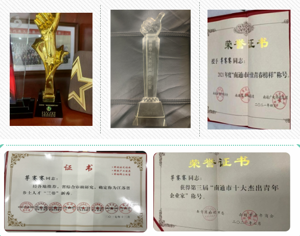 茅赛赛,江苏南通人,江苏省创业之星、江苏农村致富带头人、江苏乡土人才三带新秀、江苏省好青年、南通市十大杰出青年企业家、南通市十佳新锐青年企业家、南通市第十六届人大代表。2017年5月,受江西省兴国县委县政府之邀,从千里之外的江苏南通来到国家级贫困县--江西省兴国县考察投资,成立兴国拓诚农业科技有限公司,后组建江西国康农业集团有限公司。公司落户于兴国之初,就怀着倾注于农业、专注于产业、福祉于农民的情愫,以优势产业带动,实现乡村振兴奔小康的真心实意,不忘初心,砥砺前行。坚持以乡村振兴和农民增收为第一要务,实行“龙头企业+合作社+基地+三带(本地菜农、贫困户、返乡创业者)”,通过订单农业确保增收。仅2021年,公司种植基地吸纳就地就业务工人员1227人,发放就地就业务工人员工资682多万元,发放农民土地流转金347多万元,上缴村管理费47万元,总计1076多万元,其中300多原建档立卡贫困户受益。为农户奔康、乡村振兴尽一份绵薄之力。授予:兴国拓诚农业科技有限公司“赣州市文明单位”、“赣州市先进民营企业”、“兴国县脱贫攻坚最佳帮扶企业”等荣誉。