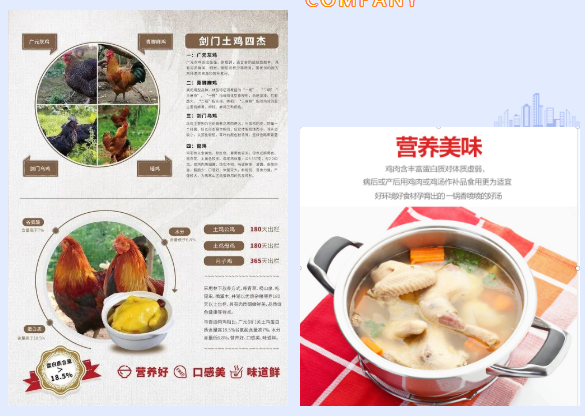 剑门关土鸡在2011年获批国家地理标志证明商标和中国农产品地理标志,现已是全国绿色农业十佳畜牧地标品牌、省级特色农产品优势区,并荣登2020中国品牌价值评价区域品牌榜(地理标志产品),为产业发展营造了良好的市场环境。剑门关土鸡具有土鸡血缘、山林放养、原粮饲喂、风味鲜美、绿色健康五大特点,深受广大消费者青睐。剑门关土鸡选用广元灰鸡优质土鸡品种养殖,公鸡强壮高大,母鸡玲珑清秀,毛色鲜亮紧密,腿胫结实高长,其抗病力和觅食能力均强于普通土鸡。土鸡采用林下放养方式,啄青草、喝山泉、吃昆虫、栖灌木,并辅以优质玉米、小麦、稻谷、豆类喂养180天以上出栏,具有肉质细嫩鲜美,品质绿色健康等特点。据农业部门检测,与普通肉鸡相比,广元剑门关土鸡蛋白质含量高18.5%,谷氨酸含量高7%,水分含量低6.8%,营养好、口感美、味道鲜。
