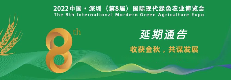 大家好,2022年9月8日国务院联防联控机制新闻发布会要求:2022年9月10日至10月底,非必要不举办会展等大型聚集性活动。按照政府相关部门的工作要求,经多方沟通及慎重考虑,原定于2022年9月11-13日在深圳会展中心(福田)举办的“2022中国.深圳(第8届)国际现代绿色农业博览会”延期举办,新展期将在确认后提前公布。展会延期,服务不停!因展会延迟带来的不便,我们深表歉意。深圳绿博会组委会将密切关注深圳会展中心排期。关于展会的最新消息,敬请关注“深圳绿博会”公众号及官网http://www.szigie.com。我们将持续跟进相关筹展事务,为参展商、采购商等提供宣传推广、采购商对接等支持。在展会推迟期间,也将链接更多优质资源。风雨过后的彩虹将会更加壮丽!待新展期确定后,我们更有信心创造一个更为安全、高质量的商洽环境。望各展商利用这个时间,做好更加充分的展会准备。深秋的鹏城将会更有利于各类农产品的展示和展销,更加有利于各类农产品拓展大湾区市场,纵观农业未来,共享发展商机!