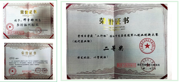 2007年获得精武馆杯”中国功夫vs职业搏击拳王56公斤级亚军;2010年度总队搏击骨干集训考核竞赛中,荣获个人总分第三名;2020年8月参加湛江市首届退役军人创业创新大赛“现代农业组”获得二等奖;2021年11月参加广东省退役军人乡村振兴双新双创培训示范班评为优秀学员;2022年1月获得湛江市退役士兵就业创业服务促进会颁发的现代农业带头人称号;2022年1月获得湛江市退役士兵就业创业服务促进会颁发的乡村振兴标兵称号;