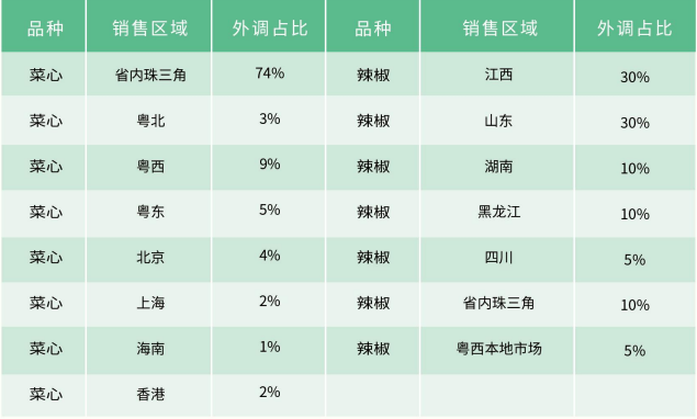 冬种蔬菜主要外调省份